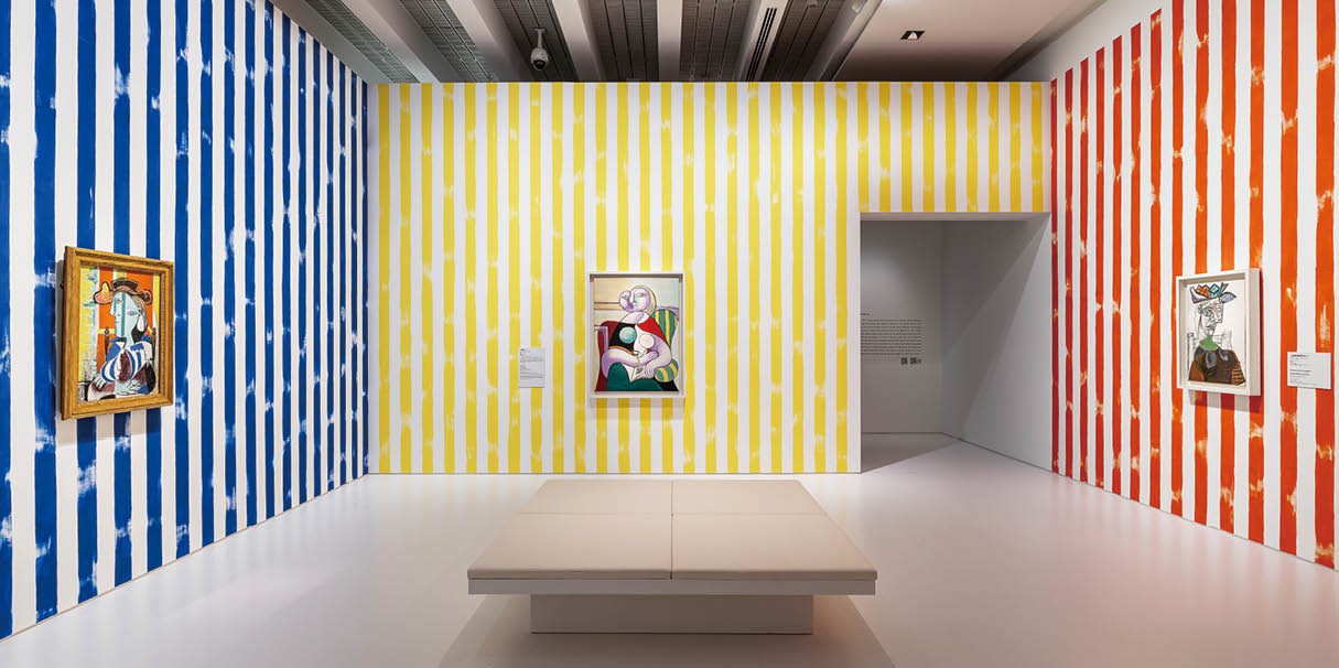 为此,保罗·史姑娘遗弃了近几十年来盛行的“白盒子”展示模式,以颜色、图案、条纹与物件为痕迹构建千里浸式展陈结构,使作品与空间产生宽裕节拍的呼应谋划,引颈不雅众“走进毕加索”,成为其艺术天地的同业者。这些策画不仅和会了两位艺术家的视觉元素,更让不雅展体验自己成为一场千里浸式、充满节拍与厚谊的视觉旅程。