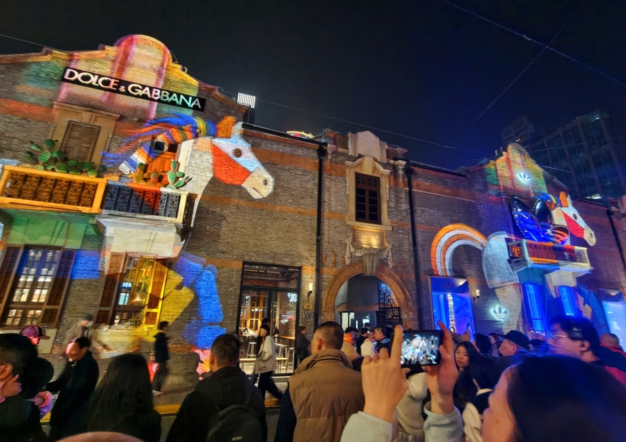 这个春节,不妨散步至茂名北路,相见《河汉奔马》镭射流苏光影安装,感受“福禄寿禧财”五福光影随日夜流转的祥瑞意趣;碰见《新岁》光影安装,在钻石般的妍丽后光下定格新春一忽儿。安身张园,看徐悲鸿笔下的骏马在《一马动身点》光影秀中穿越多重魔幻时空;不雅赏《光影头马》光影秀以光为笔,勾画出的奔马成长画卷。此外,还有更多兴味、奇妙的光影打卡点遍布静安,一同“扮靓城市的天外”,邀您共赴一场“昂首齐景、移步换景”的沉浸式光影新春。
