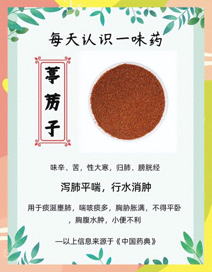 对于葶苈子的药性,历代史籍记录较为和解。《神农本草经》言其 “味辛,寒”,《名医别录》补充其 “苦,大寒,无毒”,《中国药典》(2020 版)则明确其 “辛、苦,大寒;归肺、膀胱经”。其大寒之性,使其善清泻肺火、通利水湿,但也因药性峻猛,需严控用量;归肺、膀胱经,对应其泻肺平喘、利水消肿的中枢功效,可同期作用于肺之骚扰与膀胱之水湿。