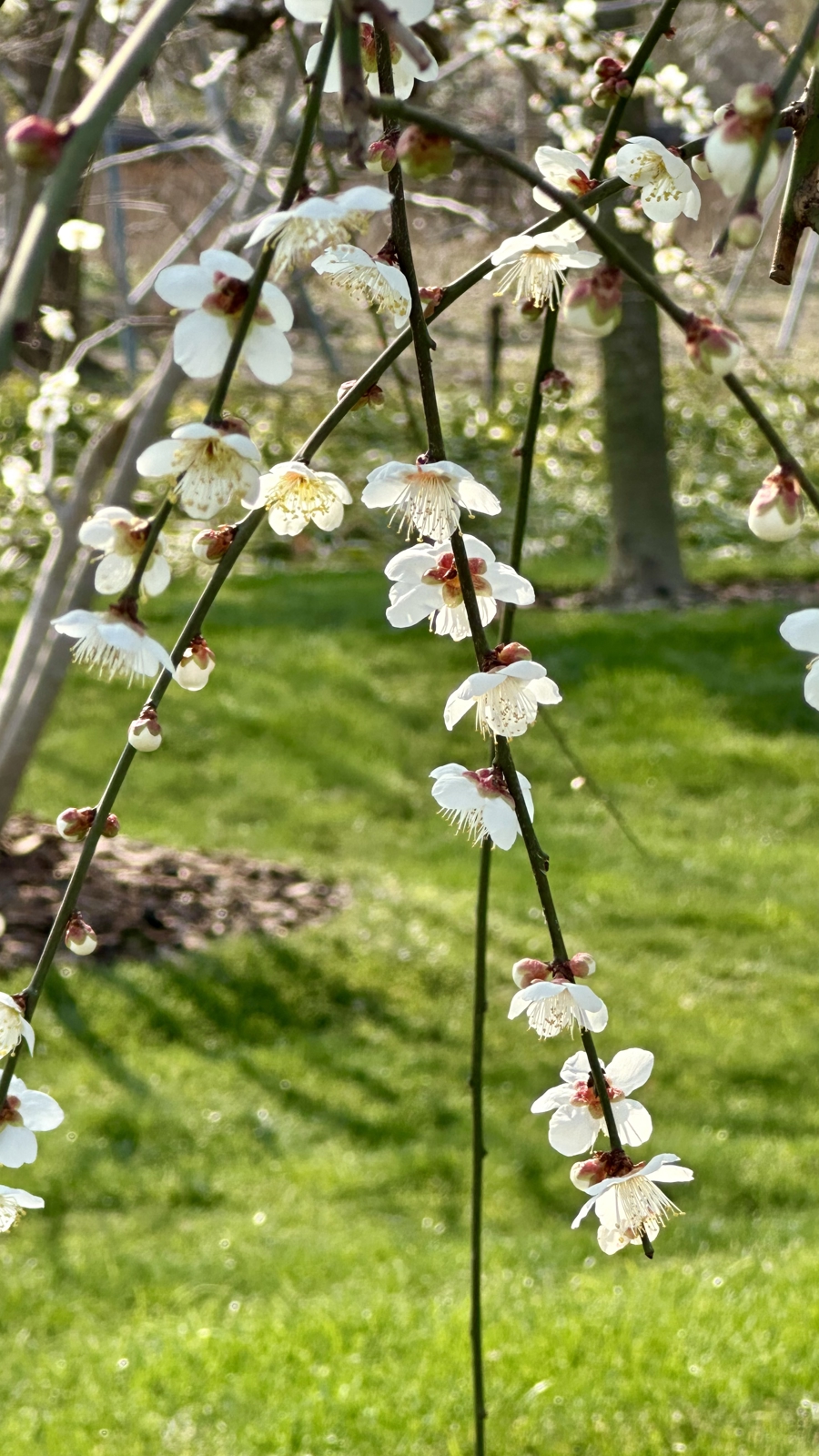 昨天,新民晚报记者来到天下花艺园。进口处即是两株宏大的千年油橄榄,仿佛在静立迎宾。走进园内,200多株垂枝梅口头相反,花枝如瀑布雷同歪斜而下。有的枝条上已开满花朵,有的则缀满花苞,等这几天阳光一晒就会“爆花”。