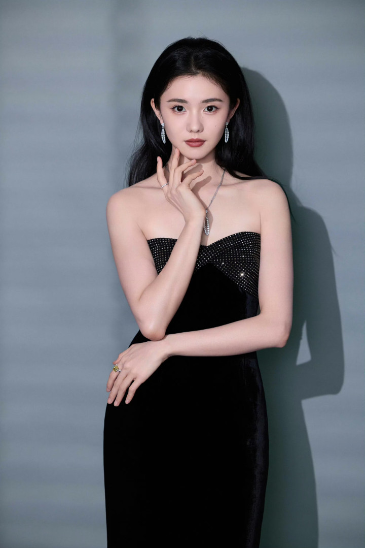 开元棋牌app 刘浩存抹胸黑裙造型, 高等大气