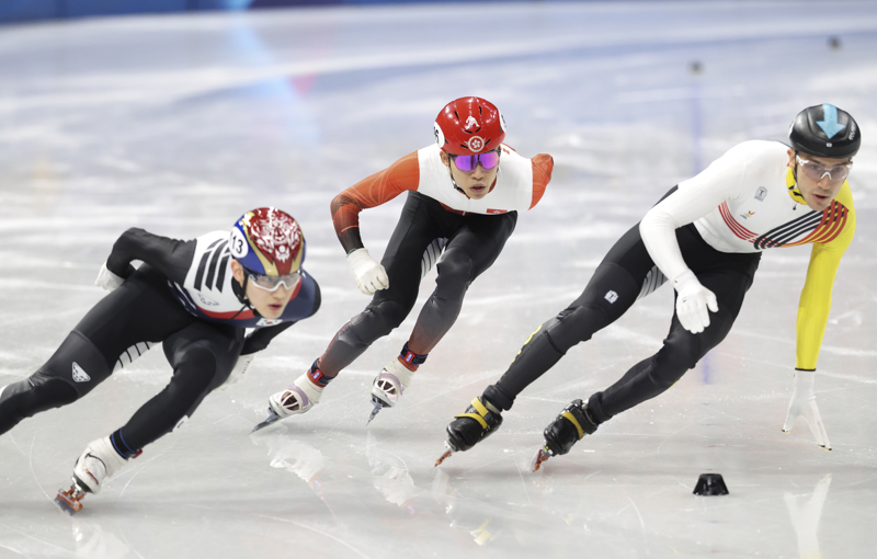 当地时期2月10日,米兰-科尔蒂纳冬奥会短说念速滑男人1000米初赛介怀大利米兰举行,中国香港选手郭子峰(中)在比赛中。\n 新华社记者 李明 摄
