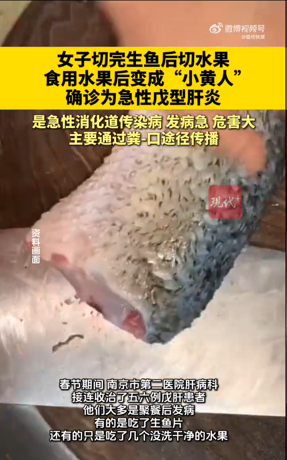 春节时辰,南京市第二病院肝病科接连收治了五六例戊肝患者。他们大多是聚餐后发病,有的是吃了生鱼片,还有的仅仅吃了几个没洗干净的生果。