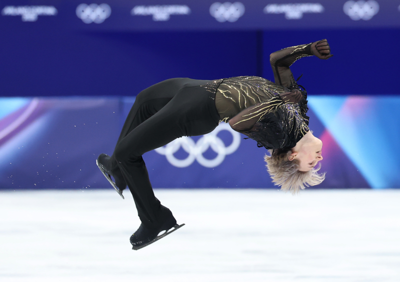 2月13日,好意思国选手马里宁在目田滑比赛中。\n 当地时期2月13日,米兰-科尔蒂纳冬奥会形态溜冰男人单东说念主滑比赛介意大利米兰驱散。\n 新华社记者 李明 摄