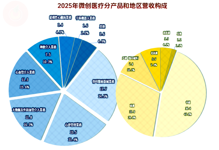 “骨科医疗器械业务”和“心律惩处业务”是微创医疗的两大中枢业务;“大动脉及外周血管介入业务”和“心血管介入业务”是另两大蹙迫业务。“神经介入业务”占比近一成,按理说,也应该是蹙迫业务,但在2021年分拆为“微创脑科学”上市后,2025年末减握至无适度权,不再并入微创医疗的团结管帐报表。