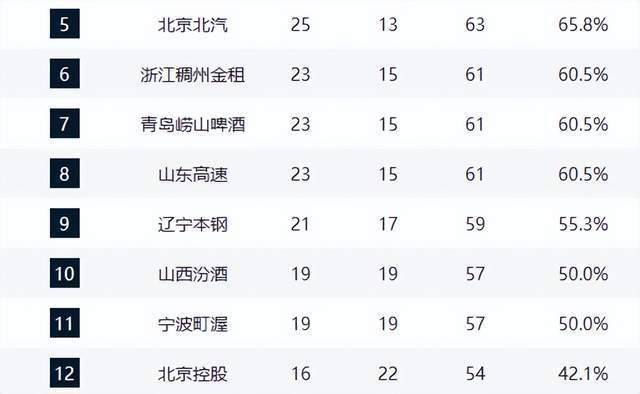 浙江队与青岛队同以23胜15负并排第六,但因互相输赢干系及近期发扬,均未能拉开与死后球队差距。山东队际遇三连败,战绩滑落至23胜15负,跌至第八,冲击四强但愿透顶幻灭,前八席位亦靠近恐吓。不得不说,山东队果然起个大早赶个晚集,邱彪的掌控智商再一次靠近质疑,不知谈这位老江湖,本赛季领域之后,会不会就此告别呢?