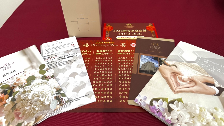 在杨浦区婚配登记中心,登记成婚的新东谈主们领证后,还能享受定制婚宴、挑选驯顺、预约旅拍、购置家电的一站式优惠“大礼包”。