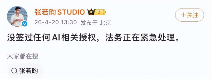 更概括的是,张若昀、于和伟责任室矗立马出来辟谣,示意未签过任何AI关连授权。好在龚宇自后找补说,那名单“仅仅标明他们应许去作念AI入驻的意愿,仅仅抒发了谈的意愿,跟实拍律例一样,具体配合还要细谈”。